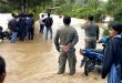 Genangan Deras, Aparat Bantu Anak Sekolah Menyeberang