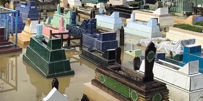 Ia menambahkan, fenomena banjir rob yang menggenangi area pemakaman kerap terjadi setiap tahun saat pasang laut tinggi. “Mau tidak mau, keadaannya sudah begini, tetap ziarah,” katanya.
