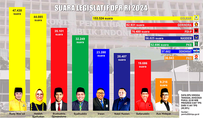 Apa yang dikatakan Syafruddin ada benarnya, mengingat hingga Selasa (20/02/2024) pukul 23.00 WIB, KPU baru menghimpun hitungan suara legislatif sebanyak 5.647 dari 11.441 Tempat Pemungutan Suara (TPS) atau progressnya baru 49.36 persen.