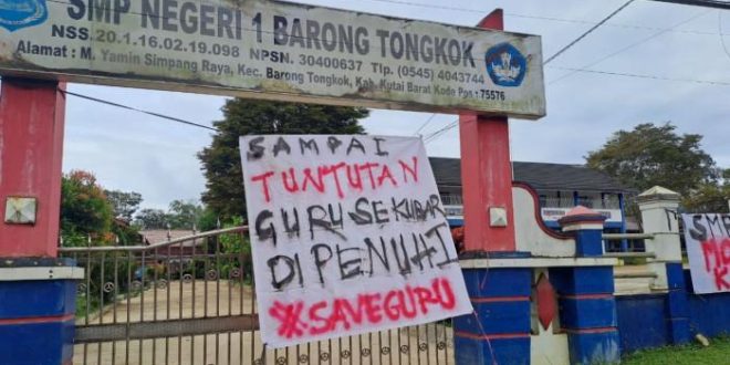 Pantauan di lapangan memperlihatkan suasana yang tidak biasa. Sejumlah sekolah di Kecamatan Barong Tongkok tampak sunyi, tanpa hiruk pikuk siswa maupun guru. Pintu masuk sekolah bahkan dipenuhi spanduk dan poster bertuliskan protes, menandakan kekecewaan para tenaga pendidik terhadap kebijakan pemerintah daerah.