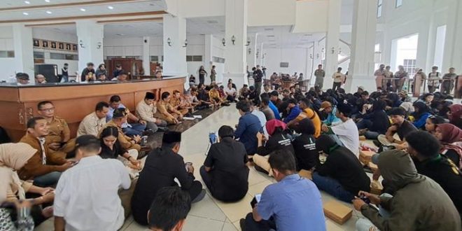 NUNUKAN – Aksi mahasiswa di depan Kantor DPRD Nunukan, Senin (01/09/2025), berakhir dengan dialog terbuka antara perwakilan mahasiswa dan unsur pemerintah daerah. Ratusan massa yang tergabung dalam Aliansi Mahasiswa Kabupaten Nunukan sempat melakukan negosiasi dengan anggota DPRD dan Kapolres Nunukan AKBP Bonifasius Rumbewas, hingga akhirnya diperkenankan masuk ke lobi gedung untuk menyampaikan aspirasi.