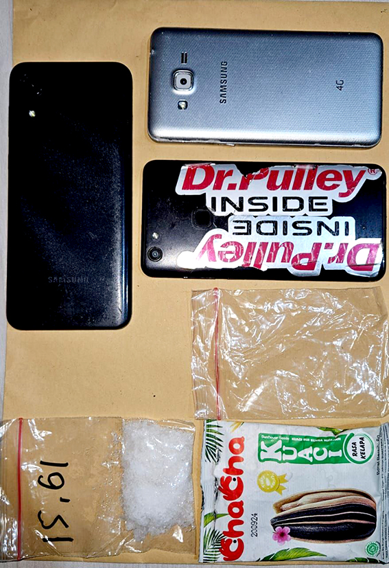 Dalam penggeledahan terhadap MI dan LAP, petugas menemukan satu bungkus kuaci merk Cha Cha, yang di dalamnya terdapat satu paket narkotika jenis sabu seberat 15,61 gram bruto, yang disimpan di kantong celana depan sebelah kanan MI.
