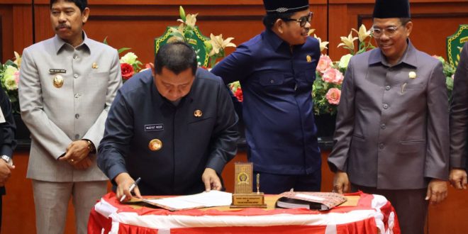 Bupati juga menyampaikan posisi neraca keuangan per 31 Desember 2024, dengan jumlah aset sebesar lebih dari Rp5,78 triliun. Rinciannya meliputi aset lancar sebesar lebih dari Rp215,01 miliar, investasi jangka panjang sebesar lebih dari Rp113,30 miliar, aset tetap sebesar lebih dari Rp5,08 triliun, aset lainnya lebih dari Rp336,28 miliar, serta properti investasi sebesar lebih dari Rp34,03 miliar. Adapun kewajiban daerah tercatat sebesar lebih dari Rp138,28 miliar, dan ekuitas dana sebesar lebih dari Rp5,68 triliun.