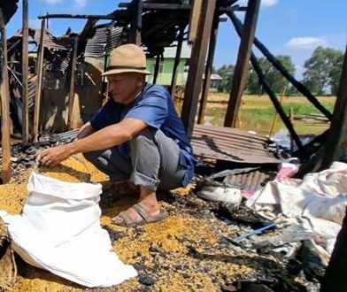 Abdullah menyebut kerugiannya mencapai Rp300 juta, mencakup rumah, dua unit kulkas, dua televisi, dua mesin kelotok, dan 200 blek gabah siam hasil panen yang juga hangus terbakar. Kini, ia hanya bisa memunguti sisa gabah yang bercampur debu puing, berharap masih berguna sebagai pakan ternak.