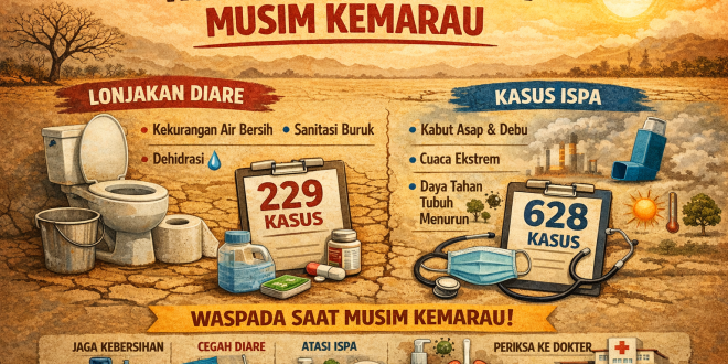 KOTAWARINGIN TIMUR – Musim kemarau yang mulai terasa di Kabupaten Kotawaringin Timur (Kotim) membawa sinyal peringatan bagi kesehatan masyarakat. Dinas Kesehatan setempat mencatat lonjakan kasus penyakit musiman, terutama diare dan infeksi saluran pernapasan akut (ISPA), sejak awal 2026.