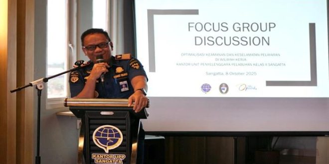 KUTAI TIMUR – Kantor Unit Penyelenggara Pelabuhan (UPP) Kelas II Sangatta kembali menggelar kegiatan bertajuk serius: Focus Group Discussion (FGD) bertema “Optimalisasi Keselamatan dan Keamanan Pelayaran di Wilayah Kerja Kantor UPP Kelas II Sangatta”, Rabu (08/10/2025). Acara dibuka resmi oleh Kepala Kantor UPP Kelas II Sangatta, Herman.