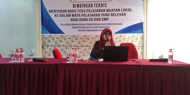 KUTAI KARTANEGARA — Komitmen pelestarian bahasa daerah kembali diperkuat oleh Balai Bahasa Provinsi Kalimantan Timur (Kaltim) melalui Tim Kerja Pelindungan dan Pemodernan Bahasa dan Sastra. Komitmen tersebut diwujudkan melalui partisipasi dua narasumber, Nurul Masfufah dan Diyan Kurniawati, dalam kegiatan Bimbingan Teknis (Bimtek) Penyusunan Buku Teks Pelajaran Muatan Lokal (Mulok) untuk guru SD dan SMP di bawah naungan Dinas Pendidikan dan Kebudayaan Kabupaten Kutai Kartanegara.