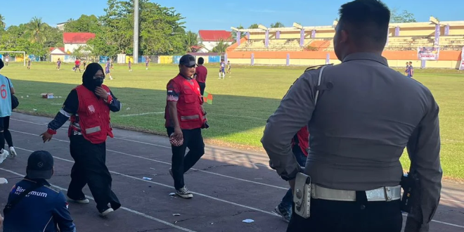 TANJUNG SELOR – Atmosfer kompetisi Turnamen Sepak Bola Bamag Friendly Match 2026 di Stadion Andi Tjoek, Selasa (03/02/2026), berlangsung tertib di tengah antusiasme penonton. Aparat kepolisian dari Polresta Bulungan menerapkan skema pengamanan berlapis untuk memastikan jalannya pertandingan tetap aman dan terkendali.