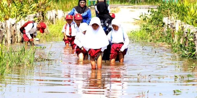 BANJARMASIN – Potret perjuangan murid SDN Basirih 10 Banjarmasin kembali mengemuka di media sosial. Banjir rob yang kerap datang dan kondisi jalan yang rusak bertahun-tahun membuat perjalanan para pelajar ini berubah menjadi tantangan harian.