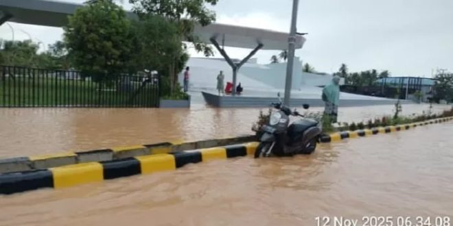 NUNUKAN – Derasnya hujan yang mengguyur Pulau Sebatik sejak Selasa malam (11/11/2025) memicu banjir besar yang melumpuhkan aktivitas warga di sedikitnya lima kecamatan. Banjir paling parah melanda Kecamatan Sebatik Timur dan Sebatik Tengah, dengan genangan air menutup akses jalan utama, merendam fasilitas umum, serta menghentikan roda perekonomian masyarakat.