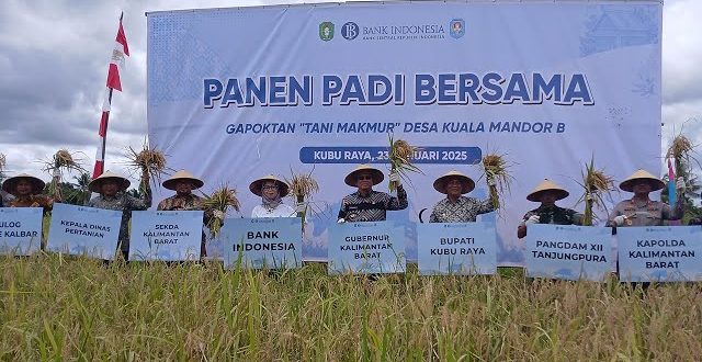 Kepala Perwakilan BI Provinsi Kalimantan Barat, Anggini Sari, menyampaikan bahwa salah satu langkah konkret yang telah dilakukan adalah dengan menyelenggarakan acara panen padi bersama oleh Gabungan Kelompok Tani (Gapoktan) Tani Makmur yang berlokasi di Desa Kuala Mandor, Kamis (23/01/2025).