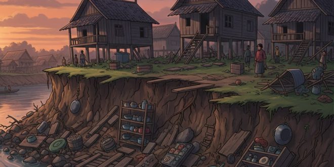 KUTAI BARAT — Bencana longsor kembali menghantui kawasan bantaran Sungai Kedang Pahu, Kutai Barat. Kali ini, pergerakan tanah menyebabkan tiga bangunan dapur rumah warga di RT 1 Kampung Banggris, Kecamatan Muara Lawa, roboh pada Minggu (25/01/2026) dini hari.