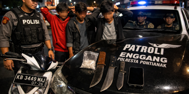 PONTIANAK — Patroli rutin aparat kepolisian kembali membongkar potensi gangguan keamanan di Kota Pontianak. Sejumlah remaja diamankan Tim Patroli Enggang Polresta Pontianak saat kedapatan berboncengan tiga sepeda motor di Jalan Tanjungpura, Sabtu (03/01/2026) dini hari.
