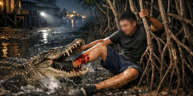 BONTANG – Serangan satwa liar kembali terjadi di kawasan permukiman Kota Bontang. Seorang pemuda berinisial F (25), warga Kelurahan Loktuan, nyaris kehilangan nyawa setelah diserang seekor buaya di sekitar kawasan hutan bakau, Kamis 22 Januari 2026 malam. Peristiwa tersebut menjadi peringatan serius bagi warga yang bermukim di wilayah pesisir dan dekat habitat alami satwa liar.