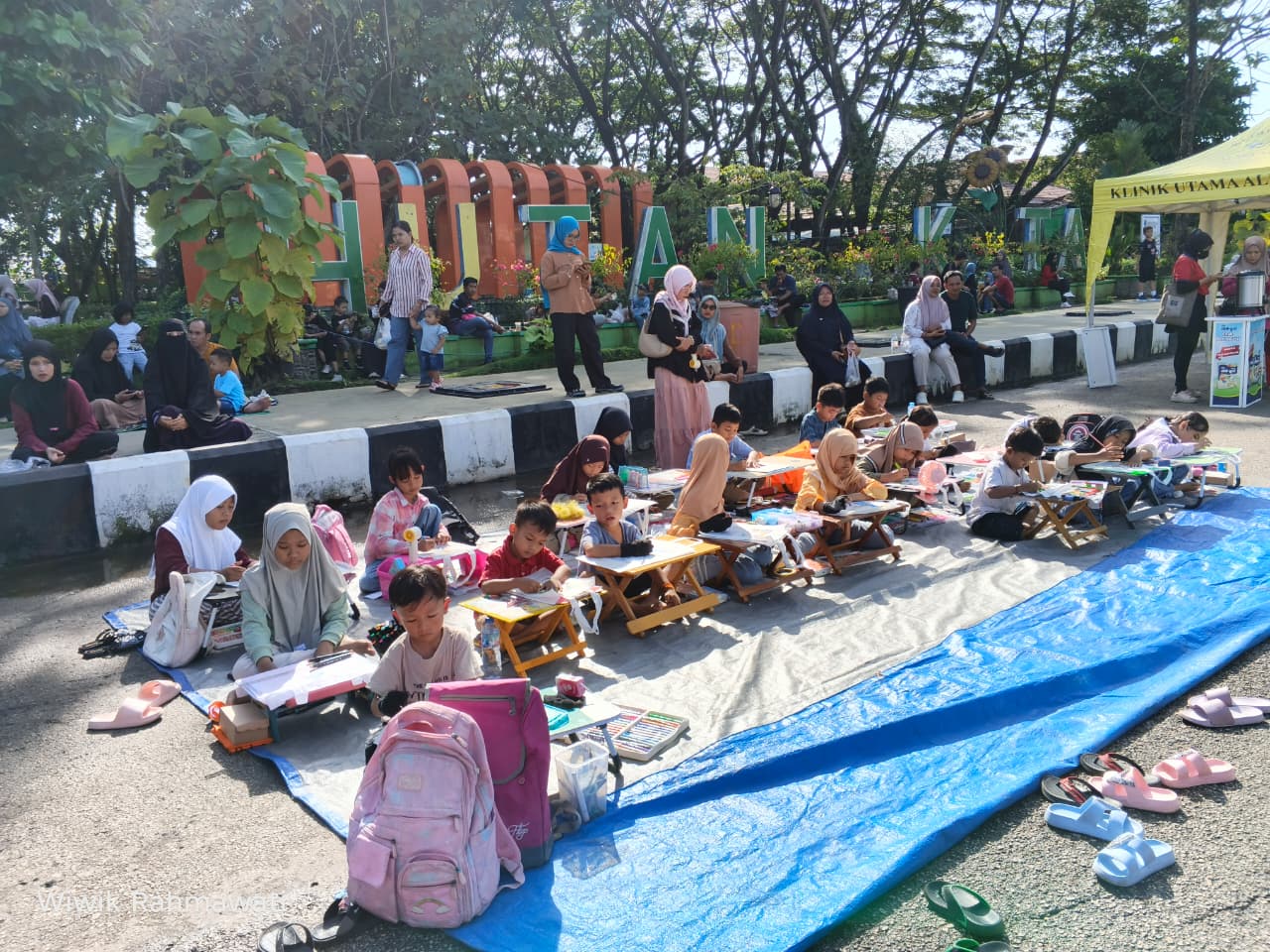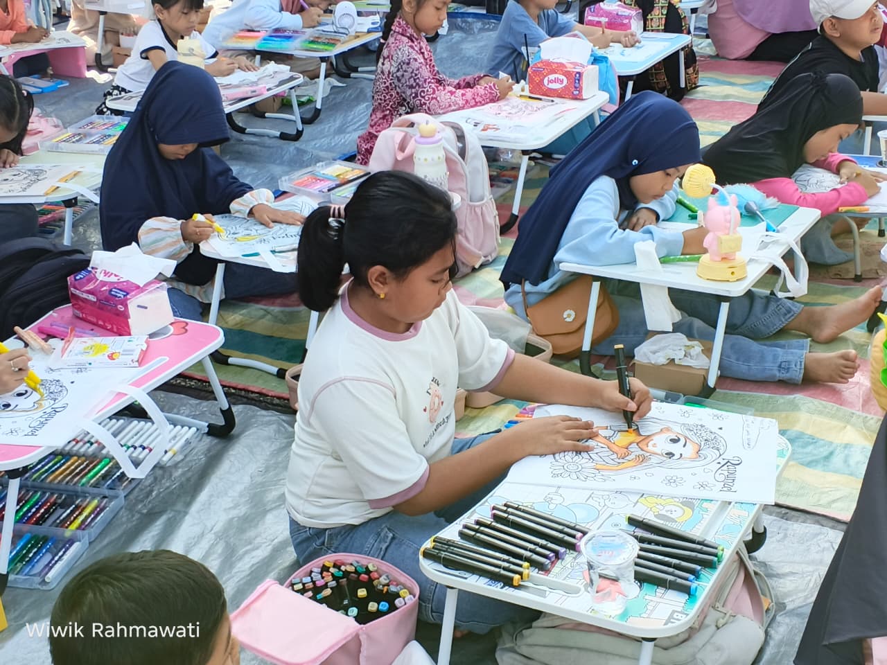 Kegiatan yang diselenggarakan oleh Teras UMKM ini menjadi ajang pengembangan kreativitas anak dengan konsep berbeda, yakni menggunakan media totebag sebagai sarana melukis dan mewarnai, bukan kertas seperti pada umumnya.