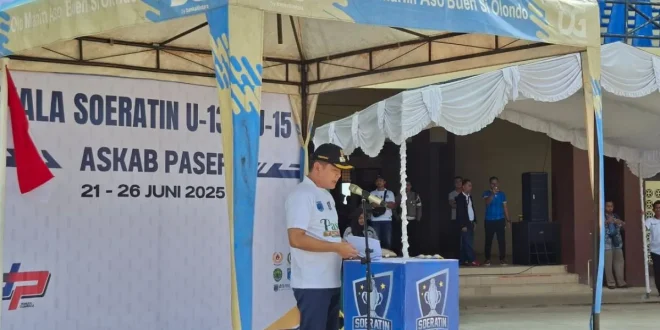 PASER – Komitmen Pemerintah Kabupaten Paser dalam mendorong kemajuan olahraga, khususnya sepak bola usia dini, kembali ditunjukkan lewat pelaksanaan Turnamen Sepak Bola Piala Soeratin U-13 dan U-15 se-Kabupaten Paser. Acara pembukaan berlangsung meriah di Stadion Sadurengas, Tapis, Tanah Grogot, pada Sabtu (21/06/2025), dipimpin langsung oleh Bupati Paser, Fahmi Fadli.