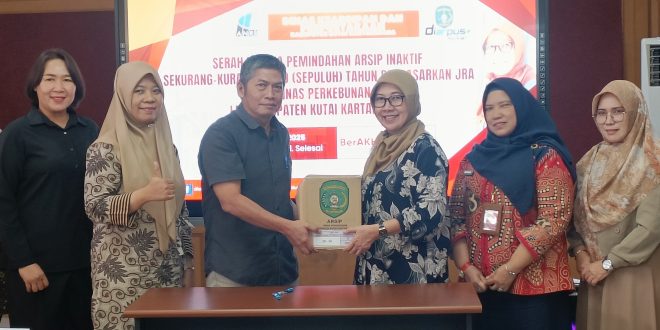 KUTAI KARTANEGARA – Dinas Perkebunan Kabupaten Kutai Kartanegara (Disbun Kukar) secara resmi menyerahkan sebanyak 33 berkas arsip inaktif kepada Dinas Kearsipan dan Perpustakaan (Diarpus) Kutai Kartanegara, pada Jumat (11/07/2025). Penyerahan ini menjadi wujud komitmen Disbun Kukar dalam mendukung tertib arsip serta meningkatkan efisiensi tata kelola dokumen di lingkungan pemerintahan daerah. …