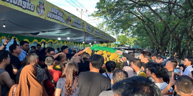 PONTIANAK — Demam durian kembali mengguncang Kota Pontianak. Kali ini, sorotan publik tertuju pada sebuah lapak durian yang secara mengejutkan menciptakan “perang rebutan” di kawasan UMKM Jalan Letkol Sugiono. Nama Durian Jemongko mendadak mencuat dan menjadi buah bibir setelah ratusan pembeli menyerbu lapak tersebut sejak hari pertama beroperasi pada Senin, …