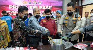 BERAU – Upaya pemberantasan narkoba di Kabupaten Berau kembali ditunjukkan secara nyata. Satuan Reserse Narkoba Polres Berau memusnahkan barang bukti narkotika jenis sabu seberat 2.381,47 gram di Ruang Command Center Polres Berau, Kamis (02/10/2025) pukul 10.00 WITA. Kegiatan ini dipimpin Wakapolres Berau, Kompol Donny Dwija Romansa, bersama Kasat Resnarkoba, AKP …