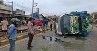 SAMARINDA – Sebuah truk tanpa muatan terguling di Jalan Dwikora, Palaran, Senin (06/10/2025), setelah hilang kendali dan menabrak median jalan, tiang lampu penerangan, serta pohon di tepi jalan. Meski sempat menghalangi jalur utama, beruntung sopir dan penumpang hanya mengalami luka ringan. Petugas Kepolisian Sektor (Polsek) Palaran bersama Unit Laka Lantas …