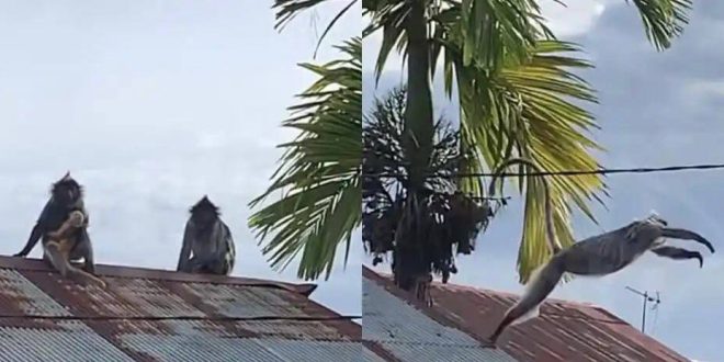 Dua ekor lutung dewasa terlihat bertengger di atap seng rumah warga, sementara seekor lainnya berlarian sambil menggendong bayinya. Dalam unggahan Instagram @habarmtp pada Selasa (25/11/2025), disebutkan sedikitnya ada empat ekor lutung yang menampakkan diri. Warga pun keluar rumah untuk menyaksikan primata yang diduga berasal dari hutan sekitar permukiman tersebut.