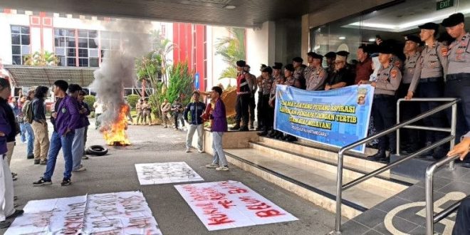 Aksi yang berlangsung sejak pagi itu diikuti mahasiswa yang tergabung dalam Aliansi Peduli Pembangunan Kukar. Mereka membawa spanduk dan poster serta menyampaikan orasi di pelataran Kantor Bupati Kukar dengan pengawalan aparat keamanan.
