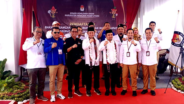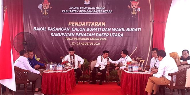 PENAJAM – PASANGAN Calon (Paslon) Bupati dan Wakil Bupati Penajam Paser Utara (PPU) Desmon Hariman Sormin dan Naspi Arsyad resmi mendaftarkan diri sebagai calon peserta Pemilihan Kepala Daerah (Pilkada) 2024 ke Kantor Komisi Pemilihan Umum (KPU) Kabupaten PPU.