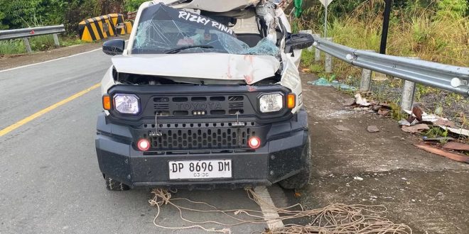 BULUNGAN — Sebuah kecelakaan tunggal kembali menyita perhatian warga di Kabupaten Bulungan setelah sebuah Toyota Hilux Pick Up putih dengan nomor polisi DP 8696 DM mengalami out of control dan menghantam pembatas beton jembatan di kilometer (km) 17 ruas poros Bulungan–Berau, Rabu (19/11/2025) sekitar pukul 04.30 Wita. Insiden ini menambah daftar panjang kecelakaan dini hari yang diduga dipicu kelelahan pengemudi.