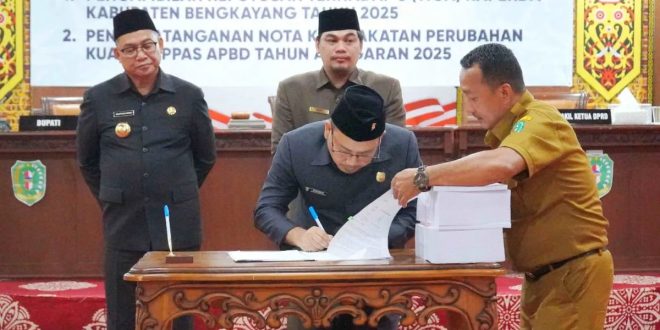 BENGKAYANG – Pemerintah Kabupaten (Pemkab) Bengkayang bersama Dewan Perwakilan Rakyat Daerah (DPRD) resmi menyepakati perubahan Anggaran Pendapatan dan Belanja Daerah (APBD) Tahun 2025 dengan total nilai Rp1,184 triliun. Kesepakatan tersebut ditandai melalui penandatanganan nota kesepahaman Kebijakan Umum Anggaran (KUA) dan Perubahan Prioritas serta Plafon Anggaran Sementara (PPAS) 2025 dalam rapat paripurna yang digelar di ruang sidang DPRD Bengkayang, Rabu (17/9).