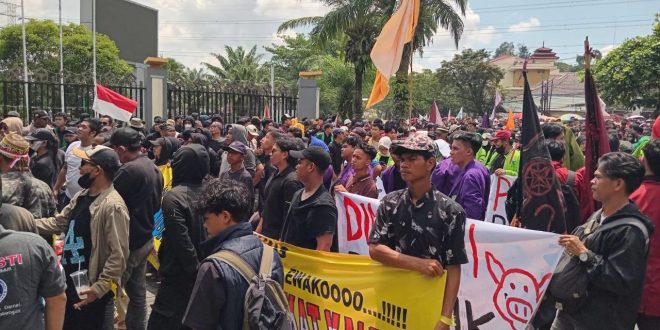 SAMARINDA – Ribuan mahasiswa dan masyarakat yang tergabung dalam Aliansi Perjuangan Masyarakat Kalimantan Timur (APMKT) menggelar aksi demonstrasi di depan Kantor Dewan Perwakilan Rakyat Daerah (DPRD) Provinsi Kalimantan Timur (Kaltim), Jalan Teuku Umar, Samarinda, Selasa (21/04/2026). Aksi tersebut mendesak DPRD Kaltim menggunakan hak angket serta melakukan audit terhadap sejumlah kebijakan Pemerintah Provinsi (Pemprov) Kaltim yang dinilai bermasalah.
