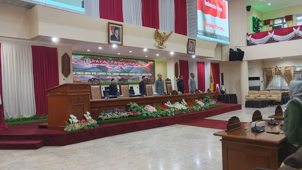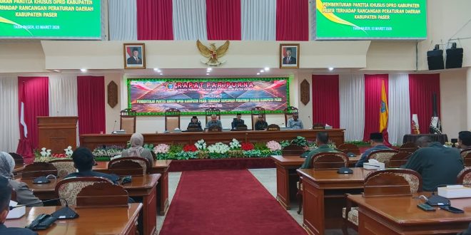 PASER – Dewan Perwakilan Rakyat Daerah (DPRD) Kabupaten Paser melaksanakan rapat paripurna dalam rangka pembentukan dan penetapan panitia khusus (pansus) Rancangan Peraturan Daerah (Raperda) Kabupaten Paser, Selasa (03/03/2026). Rapat yang digelar di Ruang Rapat Baling Seleloi DPRD Paser tersebut dipimpin langsung oleh Ketua DPRD Kabupaten Paser, Hendrawan Wahyudi, didampingi Wakil Ketua I DPRD Paser Zulkifli Kaharuddin dan Wakil Ketua II Hendrawan Putra.