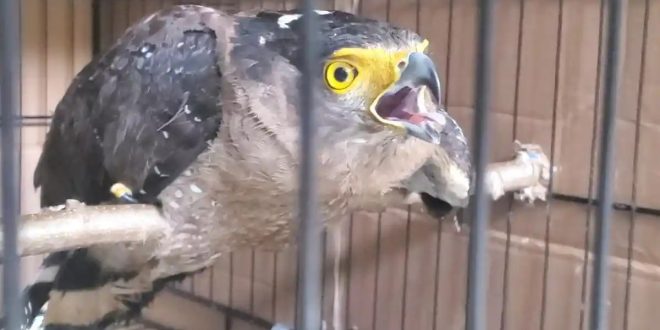 KOTAWARINGIN TIMUR – Upaya penyelundupan satwa dilindungi kembali terjadi di Pelabuhan Sampit, Kotawaringin Timur, Kalimantan Tengah. Kali ini, seekor elang ular bido (Spilornis cheela) berhasil diamankan petugas Balai Karantina Hewan, Ikan, dan Tumbuhan (BKHIT) Kalimantan Tengah, setelah ditemukan tersembunyi dalam kotak kardus di atas truk angkutan barang.