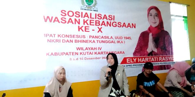 ADVETORIAL – EMPAT Pilar Kebangsaan menjadi materi utama dalam Sosialisasi Wawasan Kebangsaan (Sosbang) yang digelar anggota Fraksi Partai Demokrasi Indonesia Perjuangan (PDIP) Dewan Perwakilan Rakyat Daerah (DPRD) Provinsi Kalimantan Timur (Kaltim) Ely Hartati Rasyid di Tanah Datar, Kecamatan Muara Badak, Kabupaten Kutai Kartanegara (Kukar), Sabtu (09/12/2023).
