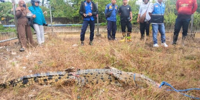 Buaya yang berhasil diamankan diperkirakan memiliki panjang sekitar dua meter dengan diameter tubuh sekitar 30 sentimeter. Berdasarkan ciri fisiknya, reptil tersebut diidentifikasi sebagai buaya muara. Proses evakuasi berlangsung menegangkan karena buaya menunjukkan perlawanan agresif. “Saat dievakuasi, buaya masih sangat agresif. Bahkan ketika sudah terikat, terlihat jelas hewan ini masih menyimpan tenaga dan bersiap melakukan perlawanan,” jelas Sofyan.