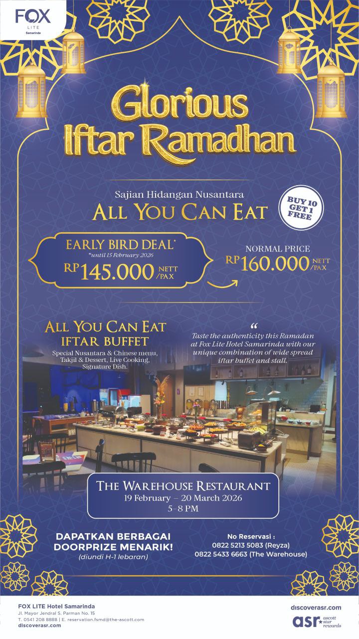 “Tahun ini kami mengusung tema Glorious Iftar Ramadan 2026. Jika diartikan, ini adalah Ramadan yang penuh berkah dan kemuliaan. Kami ingin menyambut Ramadan tahun ini dengan suasana yang hangat dan penuh keberkahan bagi para tamu,” ujar Reyza kepada awak media saat ditemui di Fox Lite Hotel Samarinda, Jalan Jenderal S. Parman No.15, Senin (02/02/2026).