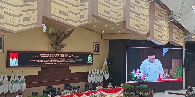 SAMARINDA – Fraksi Partai Gerakan Indonesia Raya (Gerindra) Dewan Perwakilan Rakyat Daerah (DPRD) Provinsi Kalimantan Timur (Kaltim) menyampaikan sejumlah catatan kritis dalam Rapat Paripurna ke-19 DPRD Kaltim. Agenda rapat kali ini adalah penyampaian pandangan umum fraksi-fraksi terhadap Nota Keuangan dan Rancangan Peraturan Daerah (Ranperda) tentang Pertanggungjawaban Pelaksanaan Anggaran Pendapatan dan Belanja Daerah (APBD) Tahun Anggaran 2024.