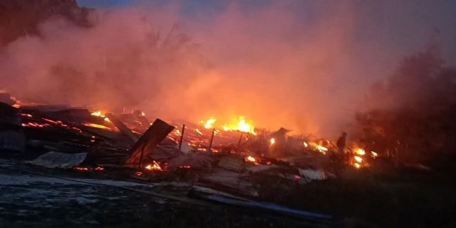 SAMBAS – Api melahap kawasan mess karyawan PT Laik di Desa Sijang, Kecamatan Galing, Kabupaten Sambas, Senin (10/11/2025) siang. Sedikitnya sepuluh unit mess berbahan kayu kering hangus tanpa sisa.