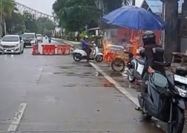 Respons cepat pemilik dan warga berhasil memadamkan kebakaran gerobak pentol di Timbau sebelum api meluas tanpa korban jiwa.