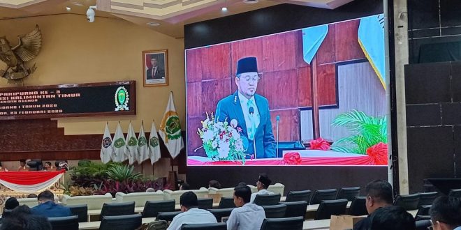 SAMARINDA – Gubernur Kalimantan Timur (Kaltim), Rudy Mas’ud, menyampaikan apresiasi kepada pimpinan dan seluruh anggota Dewan Perwakilan Rakyat Daerah (DPRD) Provinsi Kaltim yang telah melaksanakan reses ke daerah pemilihan masing-masing untuk menyerap aspirasi masyarakat. Pernyataan tersebut disampaikannya dalam Rapat Paripurna ke-3 DPRD Kaltim yang digelar di Gedung Utama DPRD, Jalan Teuku Umar, Samarinda, Senin (23/02/2026).