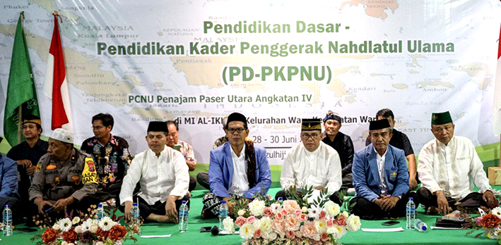 WARU – PENJABAT (Pj) Bupati Penajam Paser Utara (PPU), Makmur Marbun menghadiri kegiatan Pendidikan Dasar – Pendidikan Kader Penggerak Nahdlatul Ulama (PD-PKPNU) Angkatan IV Kabupaten PPU di Madrasah Ibtidaiyah Al-Ikhlas, Kecamatan Waru, Jumat (28/06/2024).
