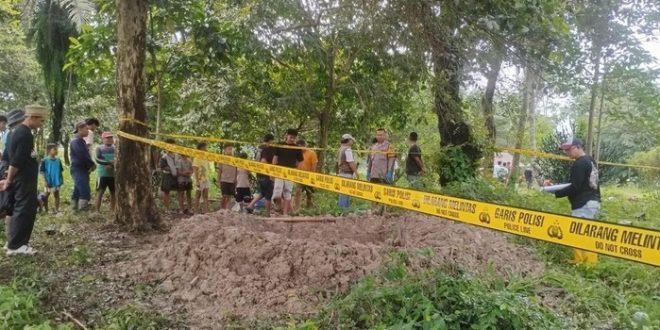 Makam almarhum Sajim berada di ujung belakang TPU, dekat sawah. Saat polisi meninjau lokasi, lubang bekas penggalian sudah terisi air hujan, dan kerangka jenazah sudah tidak ada. “Kita harus menguras air dulu, tetapi kerangka jenazah memang sudah hilang,” kata Andi.