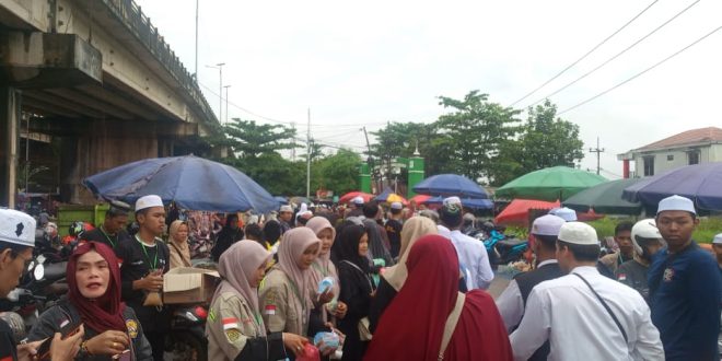 BANJARMASIN – Ribuan jamaah dari berbagai daerah memadati kawasan Kubah Basirih, Banjarmasin Barat, Minggu (09/11/2025), pada puncak peringatan Haul Habib Basirih. Suasana khidmat itu mendadak berubah ketika satu unit ambulans tampak berusaha menembus kerumunan di bawah Jembatan Basirih.