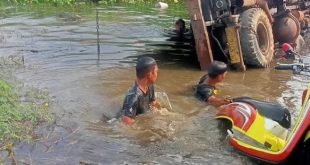 “Berselisih dengan tugboat, Mas. Bukan tabrakan, oleng saja kapalnya,” jelas Ustadz Bisrih, pimpinan jamaah haul yang berada di atas kelotok tersebut.