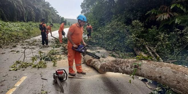 LAMANDAU – Pengendara yang melintas di Jalan Trans Kalimantan, khususnya di Kabupaten Lamandau, diminta untuk meningkatkan kewaspadaan terhadap cuaca ekstrem yang belakangan ini melanda wilayah tersebut. Pada Jumat (23/5) sore, hujan disertai angin kencang menyebabkan tumbangnya sebuah pohon tua di jalur utama yang menghubungkan Kalimantan Tengah dan Kalimantan Barat. Insiden ini sempat mengganggu kelancaran arus lalu lintas di lokasi.