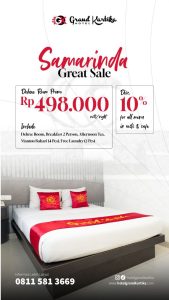 Hotel yang berada di Jalan KH Khalid Nomor 35, Kelurahan Pasar Pagi, Kecamatan Samarinda Kota tersebut menghadirkan paket promo bertajuk “Samarinda Great Sale”, sebuah program tahunan yang rutin digelar setiap peringatan hari jadi Samarinda dan Kalimantan Timur.