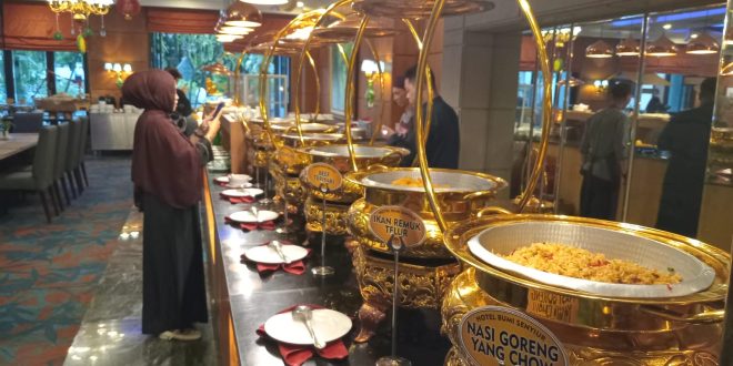 “Khasnya Hotel Bumi senyiur itu setiap tahun pasti ada kambing guling terus sushi, karena kita punya Japanese restoran dengan ditata dekorasi kapal sushi dan aneka wadai yang cuma ada di bulan Ramadan serta kami kebanyakan menu Nusantara, khas Kaltim, juga ada menu Timur Tengah seperti nasib briani dan roti Maryam,” kata Ollyne.