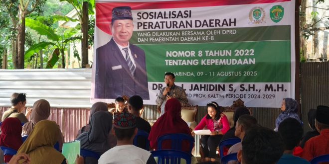 SAMARINDA – Perhatian terhadap masa depan generasi muda kembali ditegaskan oleh anggota Dewan Perwakilan Rakyat Daerah (DPRD) Provinsi Kalimantan Timur (Kaltim), Jahidin. Legislator dari Komisi III itu menggelar Sosialisasi Peraturan Daerah (Sosper) Nomor 8 Tahun 2022 tentang Kepemudaan di Jalan Batu Cermin, Kelurahan Sempaja Utara, Kecamatan Samarinda Utara, Senin (11/08/2025).