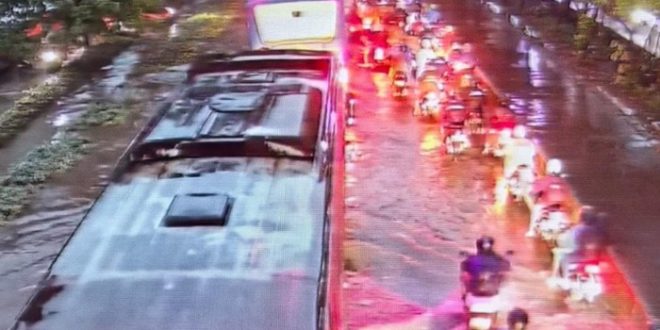 “Genangan air setinggi kurang lebih 25 sentimeter terpantau di Jalan DI Pandjaitan, tepatnya di depan WIKA Tower arah Kebon Nanas, Jakarta Timur,” tulis TMC Polda Metro Jaya dalam laporan terpisah.