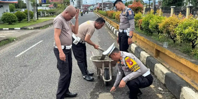 Jalan Berlubang Dikeluhkan, Satlantas Lakukan Penambalan