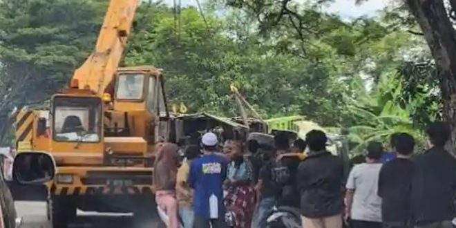 HULU SUNGAI SELATAN — Kecelakaan lalu lintas yang melibatkan truk kontainer dan mobil pikap di ruas jalan lintas Provinsi Kalimantan Selatan kembali menyedot perhatian publik. Proses evakuasi truk kontainer yang terguling ke saluran irigasi di Desa Sungai Raya Selatan, Kecamatan Sungai Raya, Kabupaten Hulu Sungai Selatan (HSS), berubah menjadi tontonan warga dan pengguna jalan.